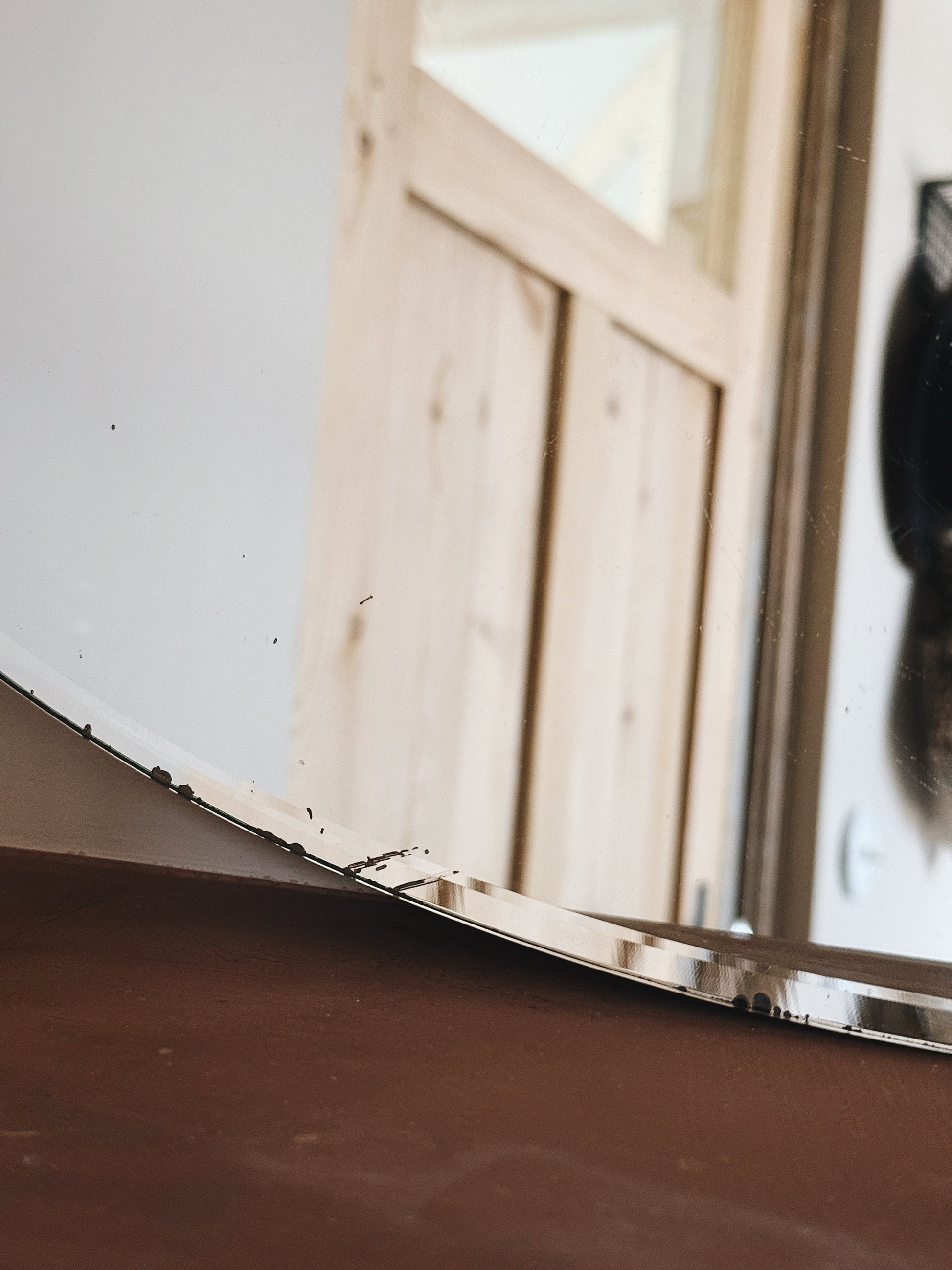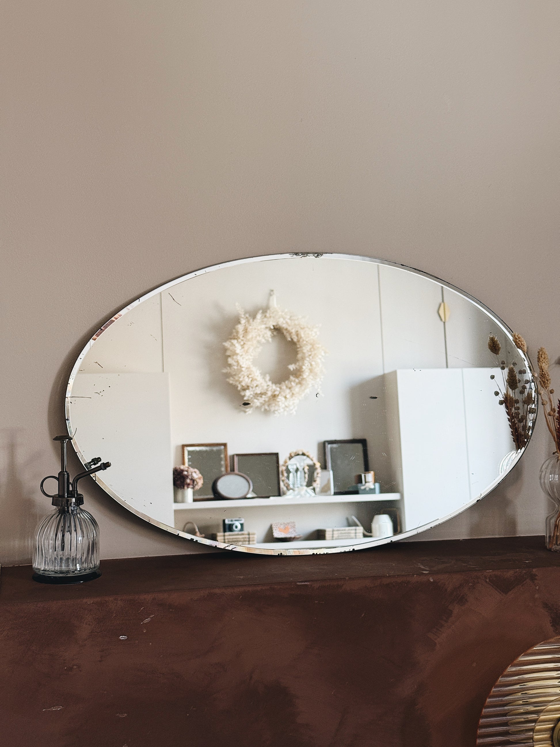 Passion miroir ancien, biseauté et piqué à souhait pour lui conférer un charme fou ! Sans parler du si joli travail de son fin biseau et de sa forme ovale. Bref, Eudonie est un coup de coeur qui je l’espère, en suscitera également un pour son ou sa futur.e propriétaire ! 💛